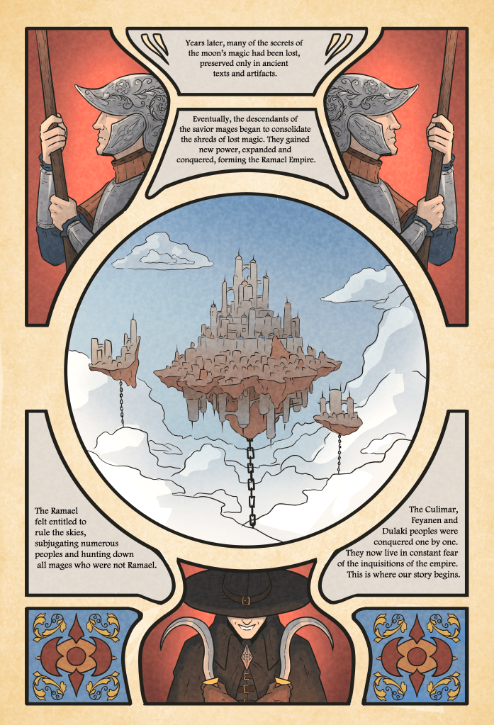 Page samples from my high fantasy web-comic and graphic novel series “Heaven’s Hymn”. You can read the rest of it here on Webtoon!